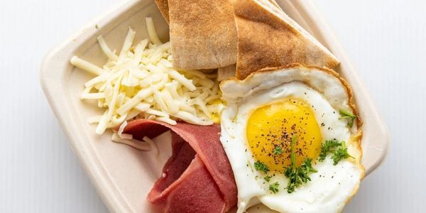 SCRAMBLED EGGS, CHOICE OF PROTEIN, JACK CHEESE AND CHOICE OF TOPPING