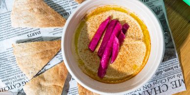 FRESH CHICKPEAS, VEGETABLES AND ICON SPICES + HOUSE BAKED SAMMON & ICON SAUCE.